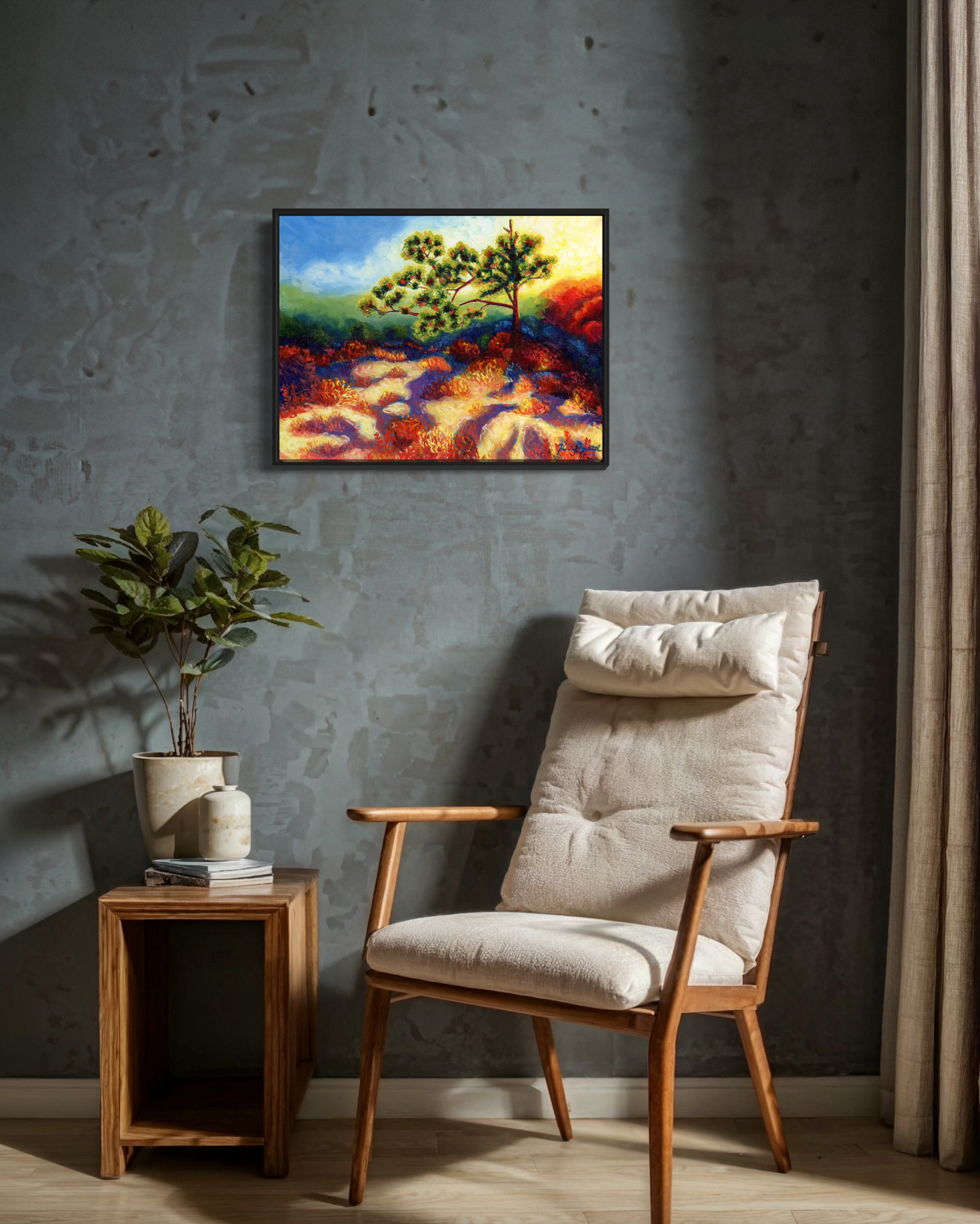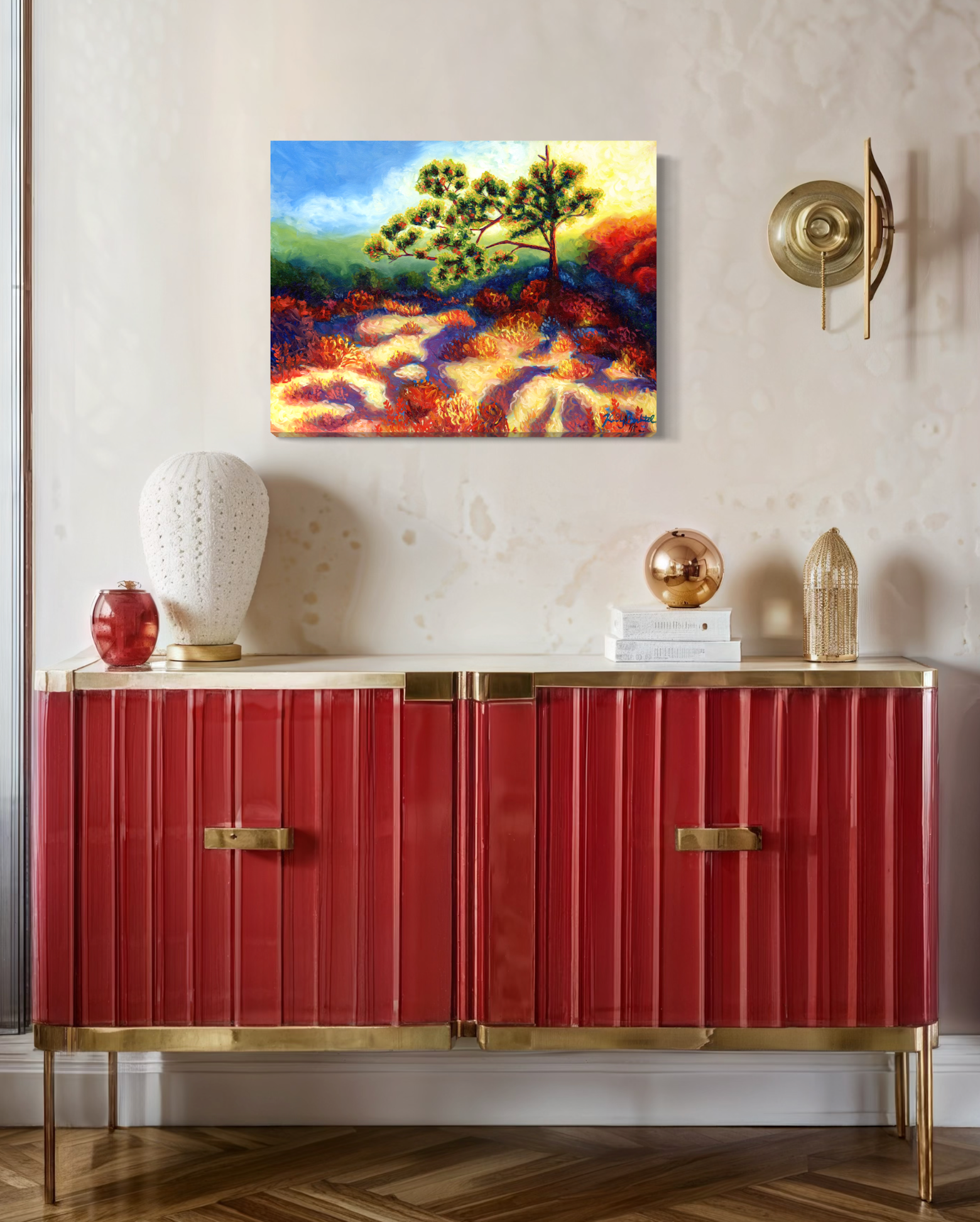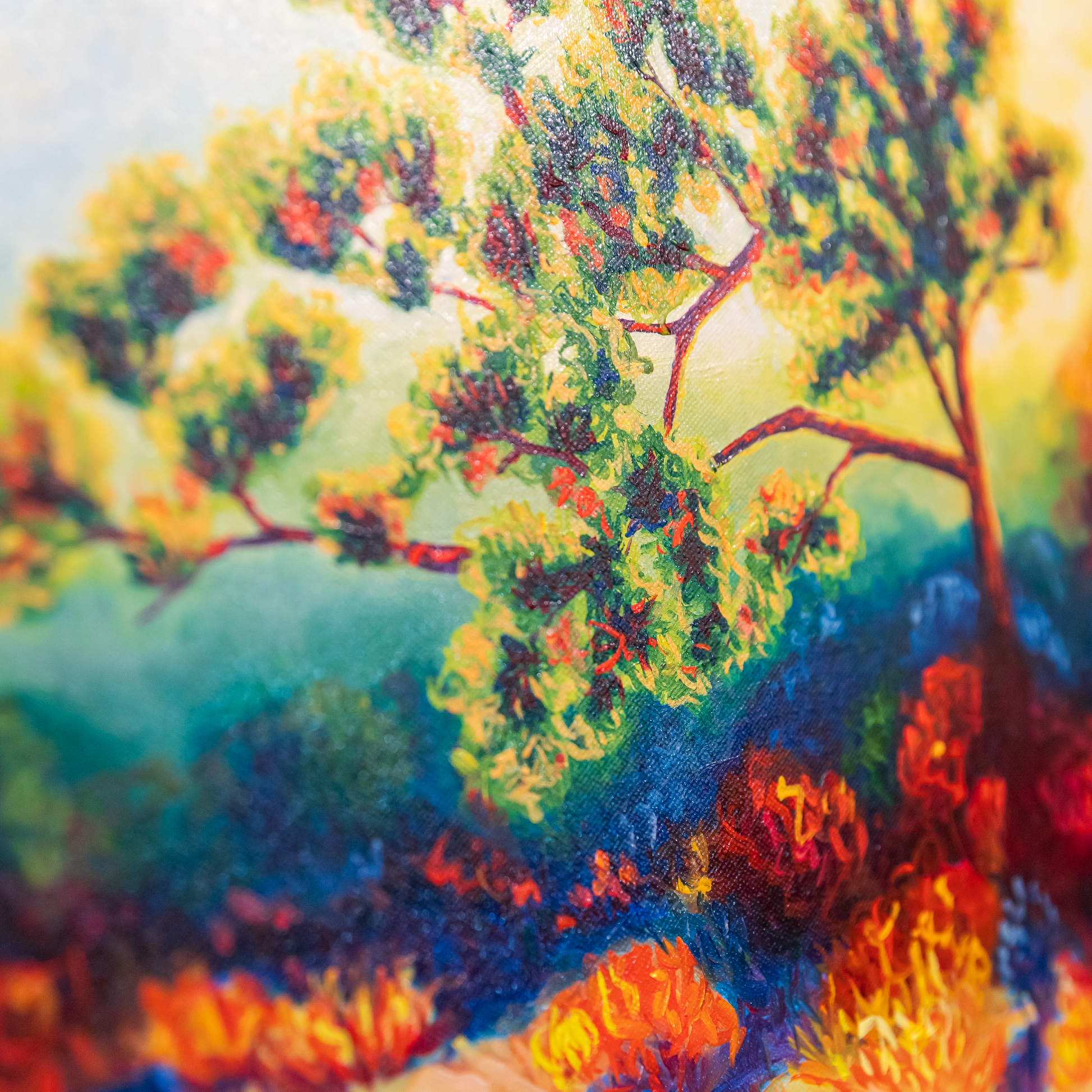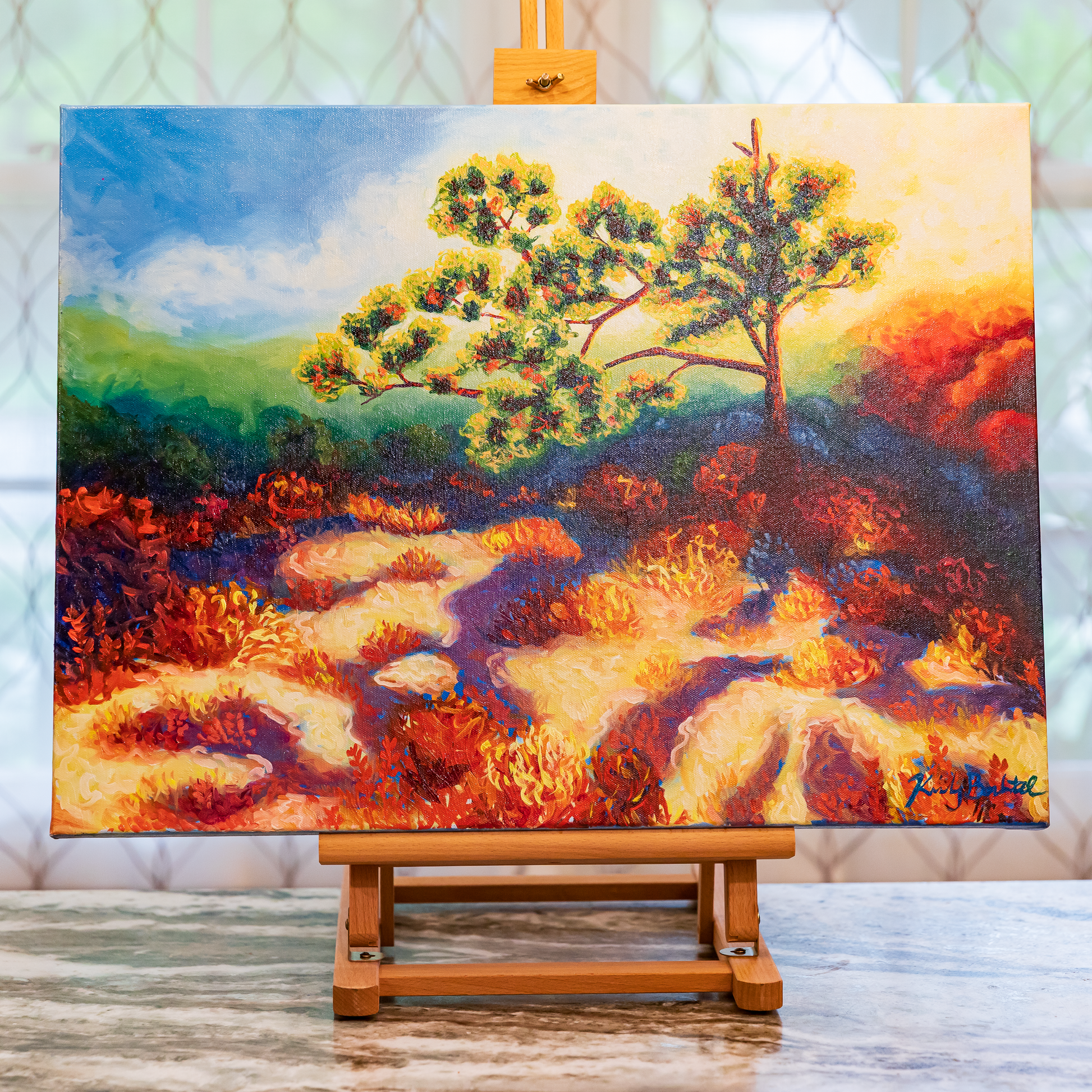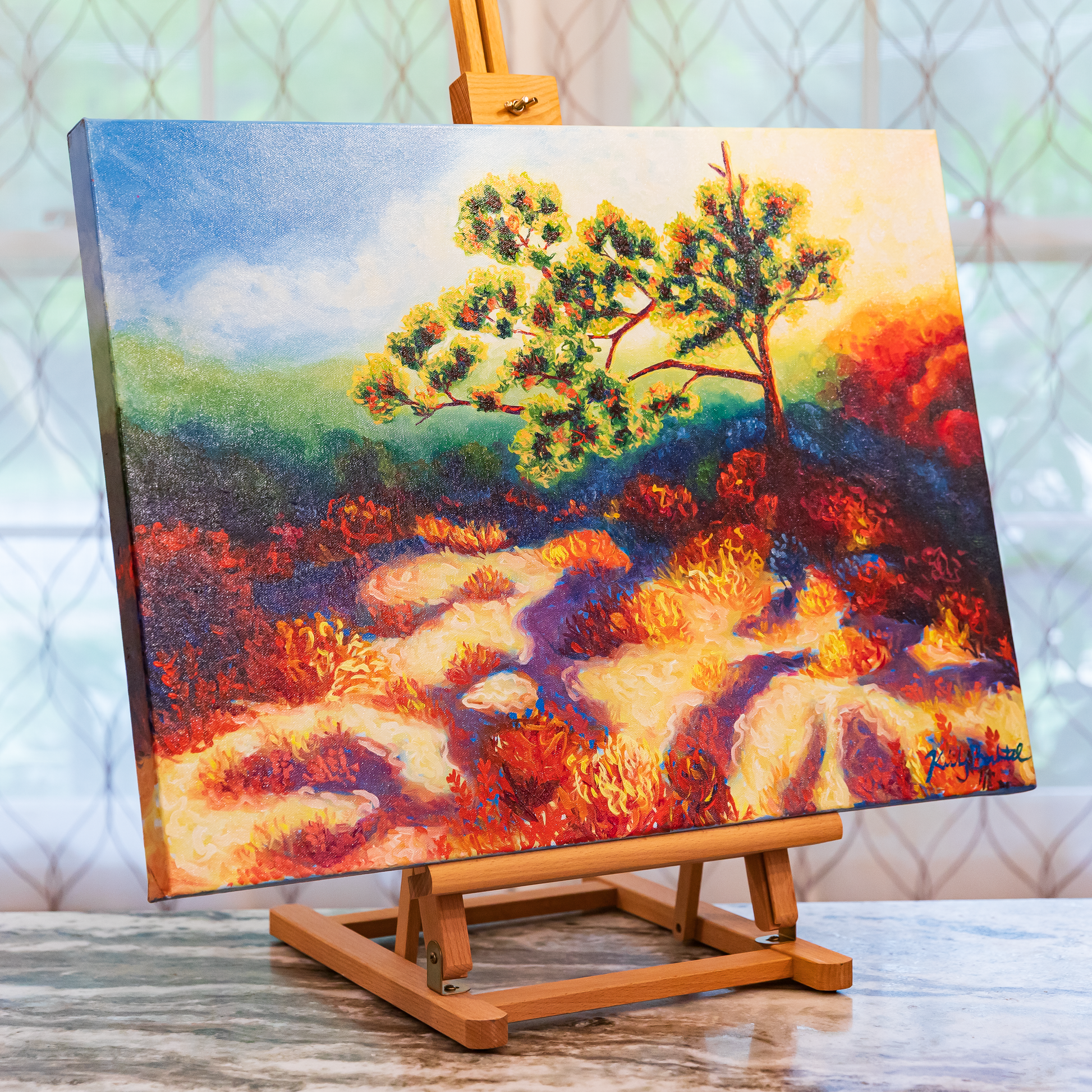 Expressive color reveals the contrast between light, shadow and texture of coastal grass and sand in this backlit landscape painting of coastal Florida. This is an original oil painting that will bring color, movement and texture to any space.