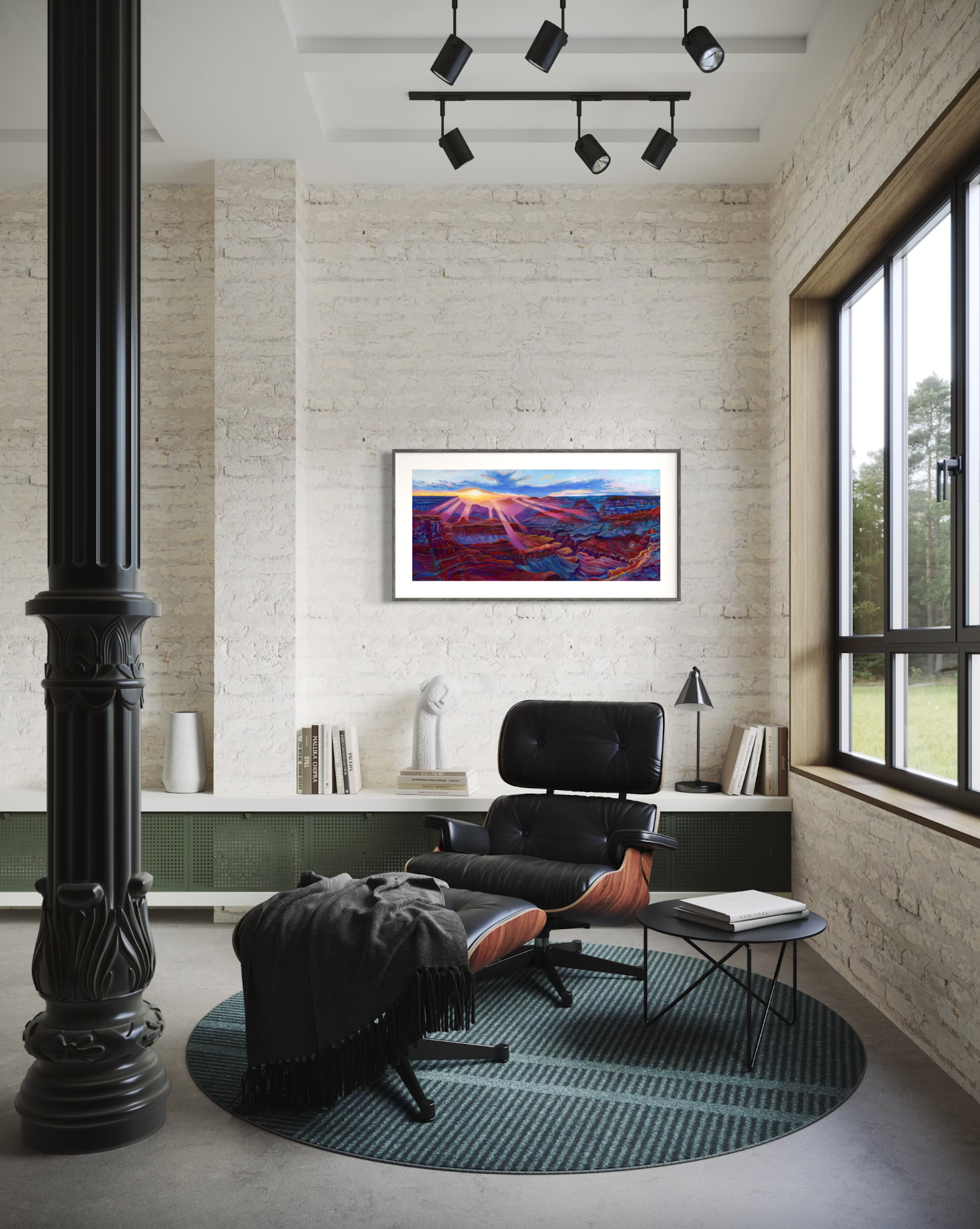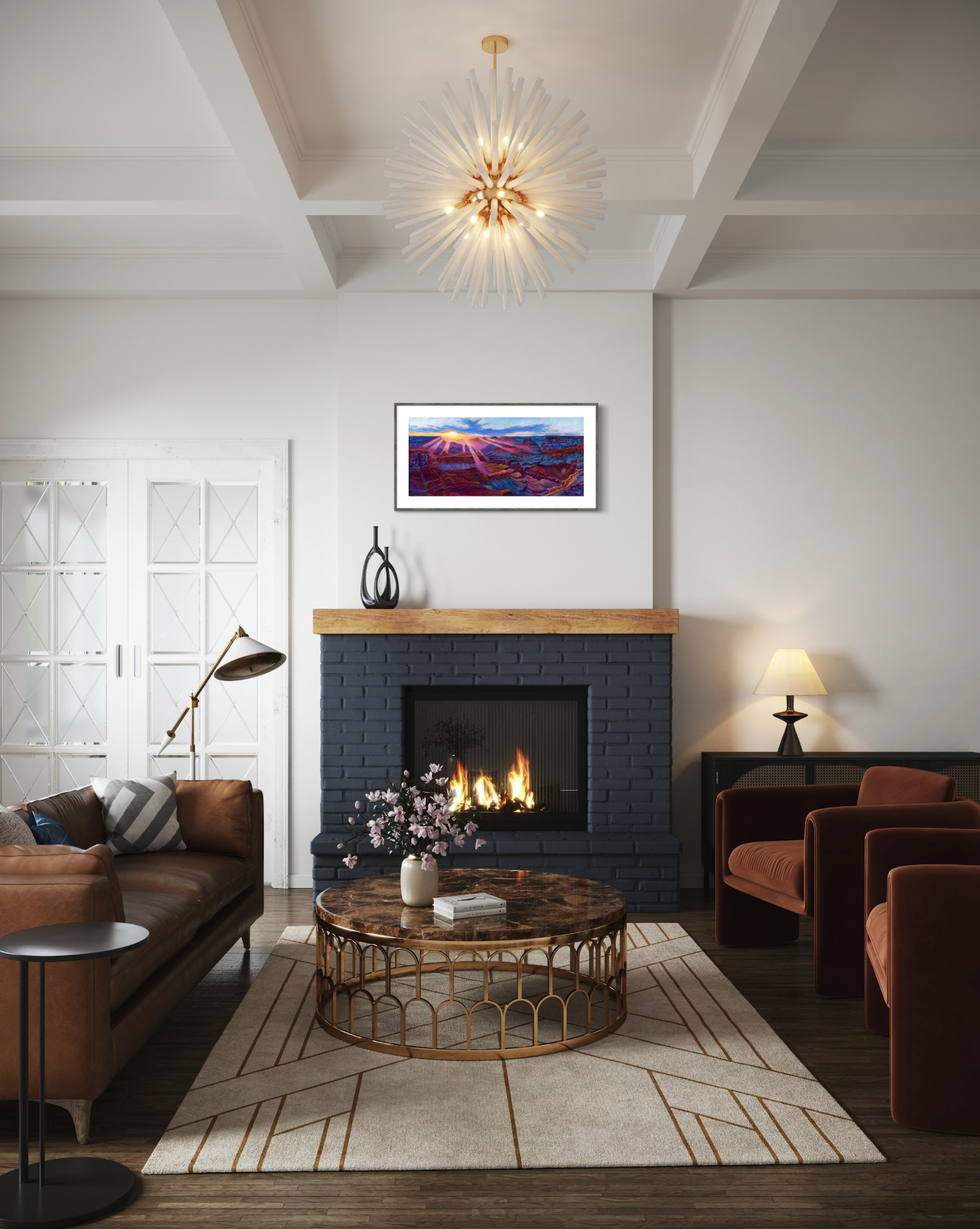 Fine art print of original oil painting "Violet Rest" capturing the sunset over the grand canyon in vivid purples, pinks and blues.