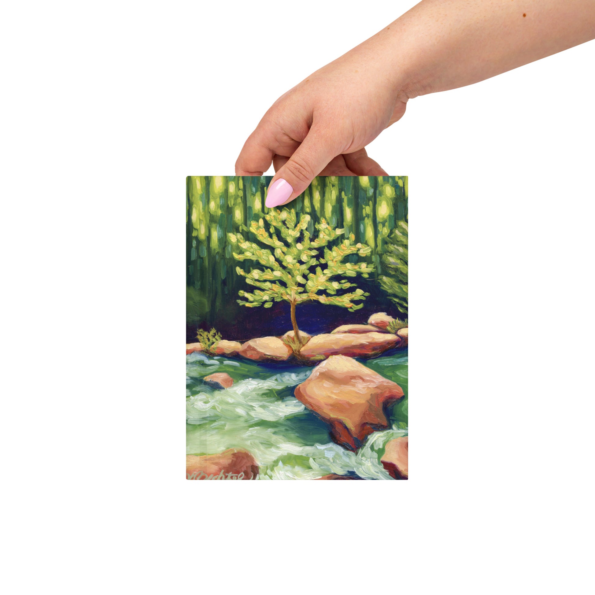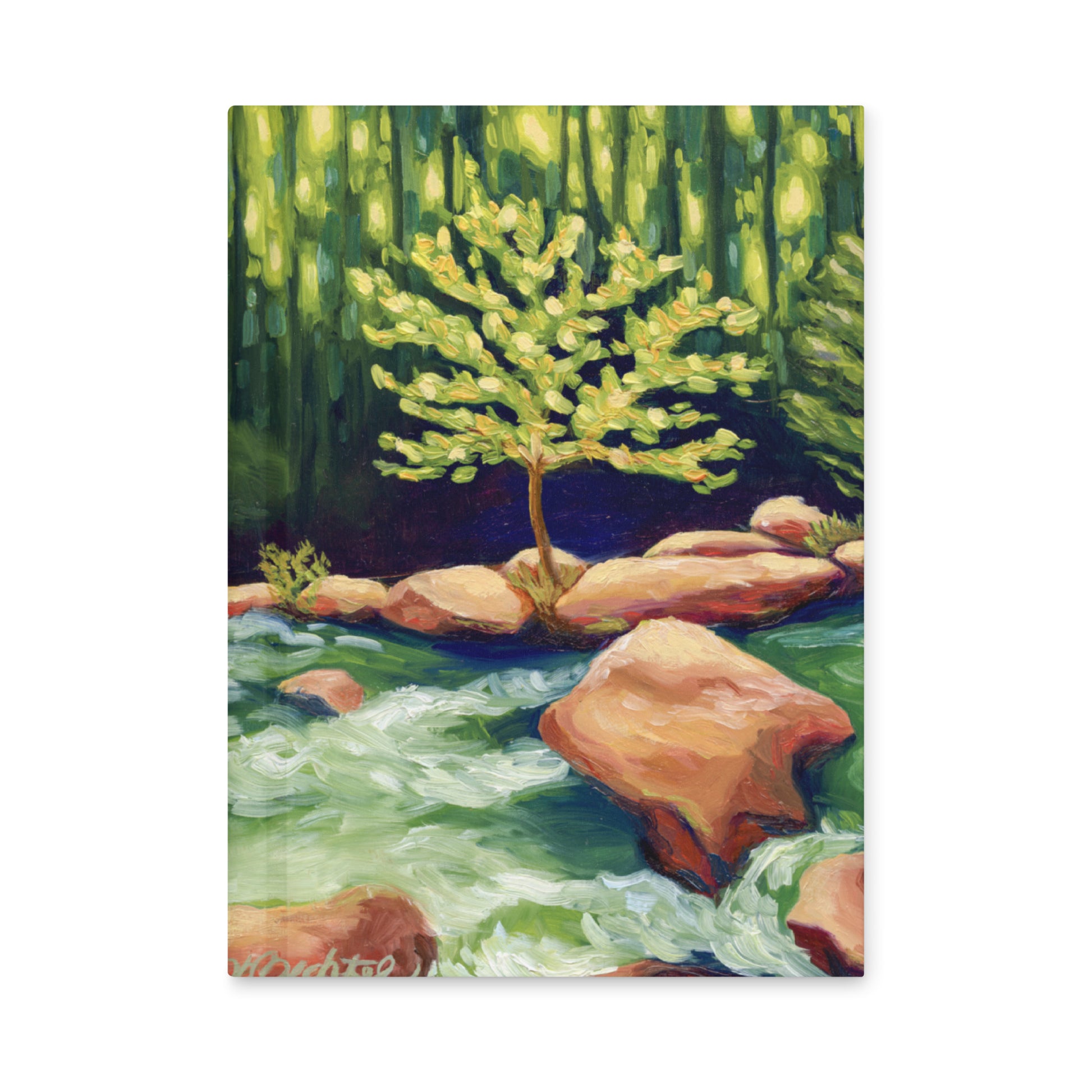 This matte hardcover journal is ready for your daily thoughts, sketches, or plans. 150 lined pages, tearable sheets, and a cover printed with original artwork "Finding the Light"