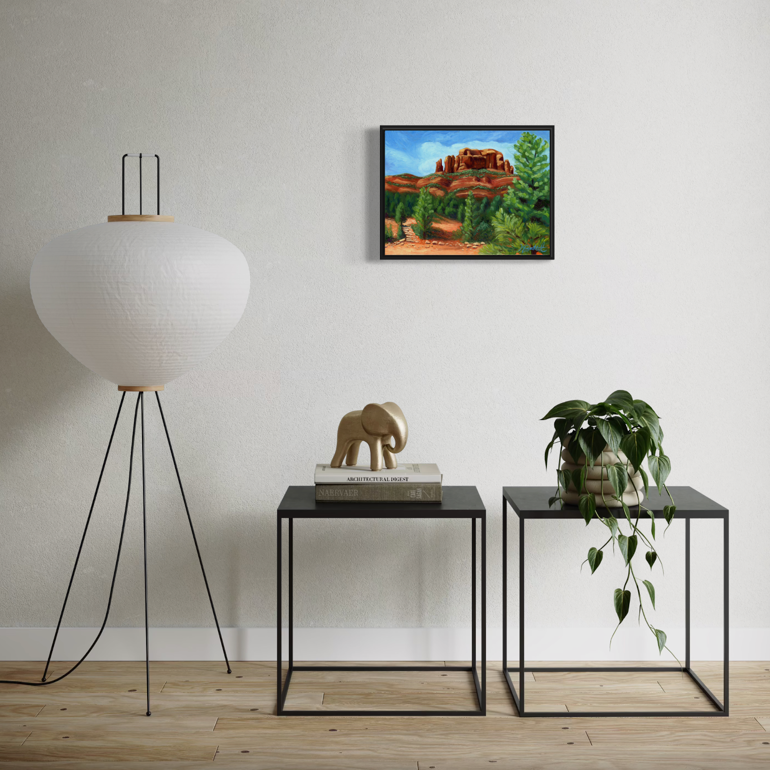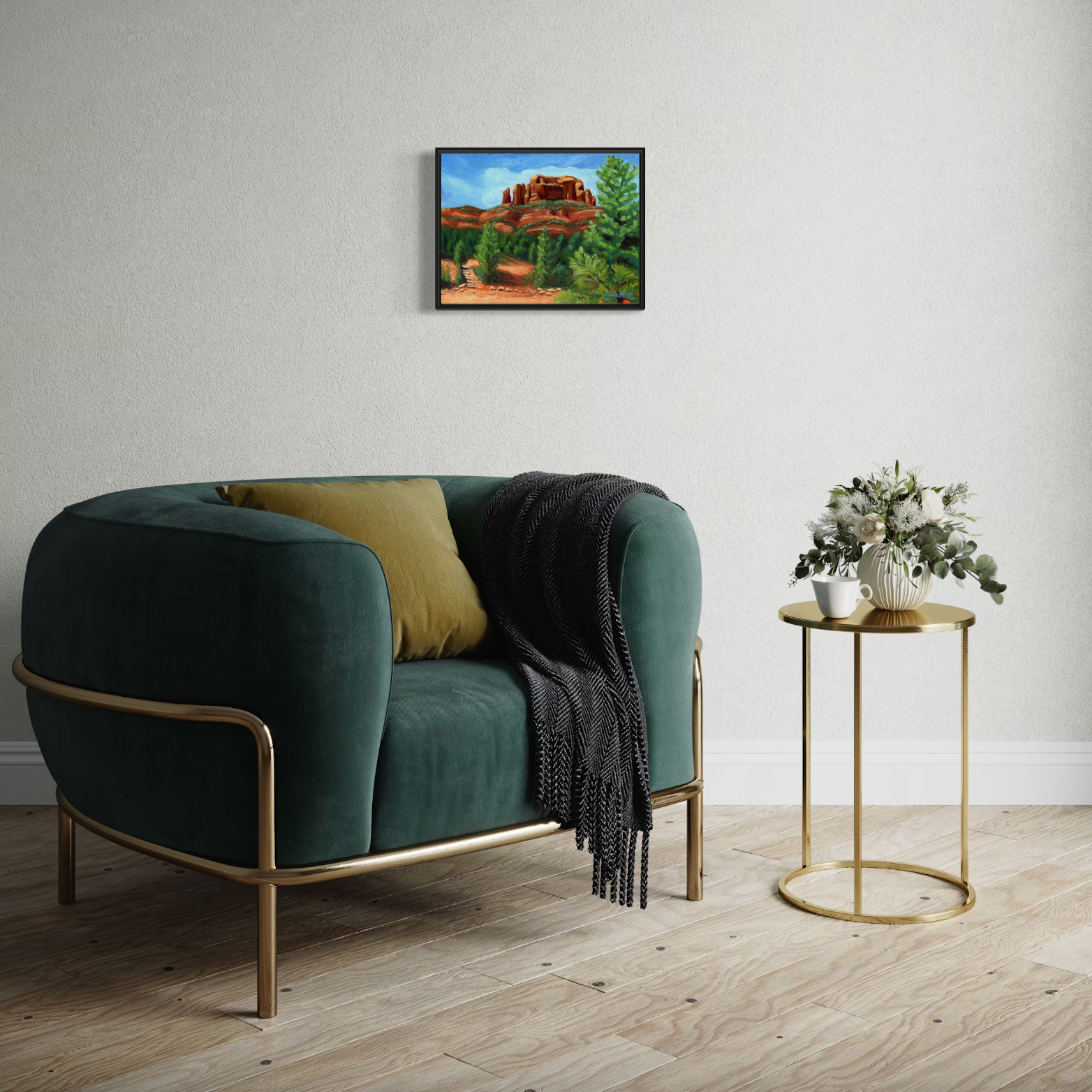 Red-brown hues of oil paint sculpt the rock formations of Sedona, Arizona as they rise above the lower brush and red dirt of the iconic western landscape. As the peak rises above, one cannot help feel in a awe of the growth of both plant and stone in this unique place.